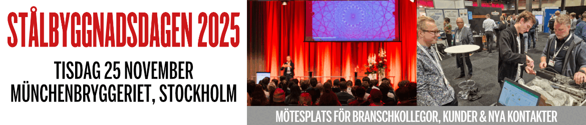 Tisdagen den 25 november träffas vi stålbyggare på årets Stålbyggnadsdag. Dagen erbjuder många intressanta och inspirerande föredrag för dig som stålbyggare. Ett utmärkt tillfälle att hämta hem matnyttig information till dig själv och till din verkstad!