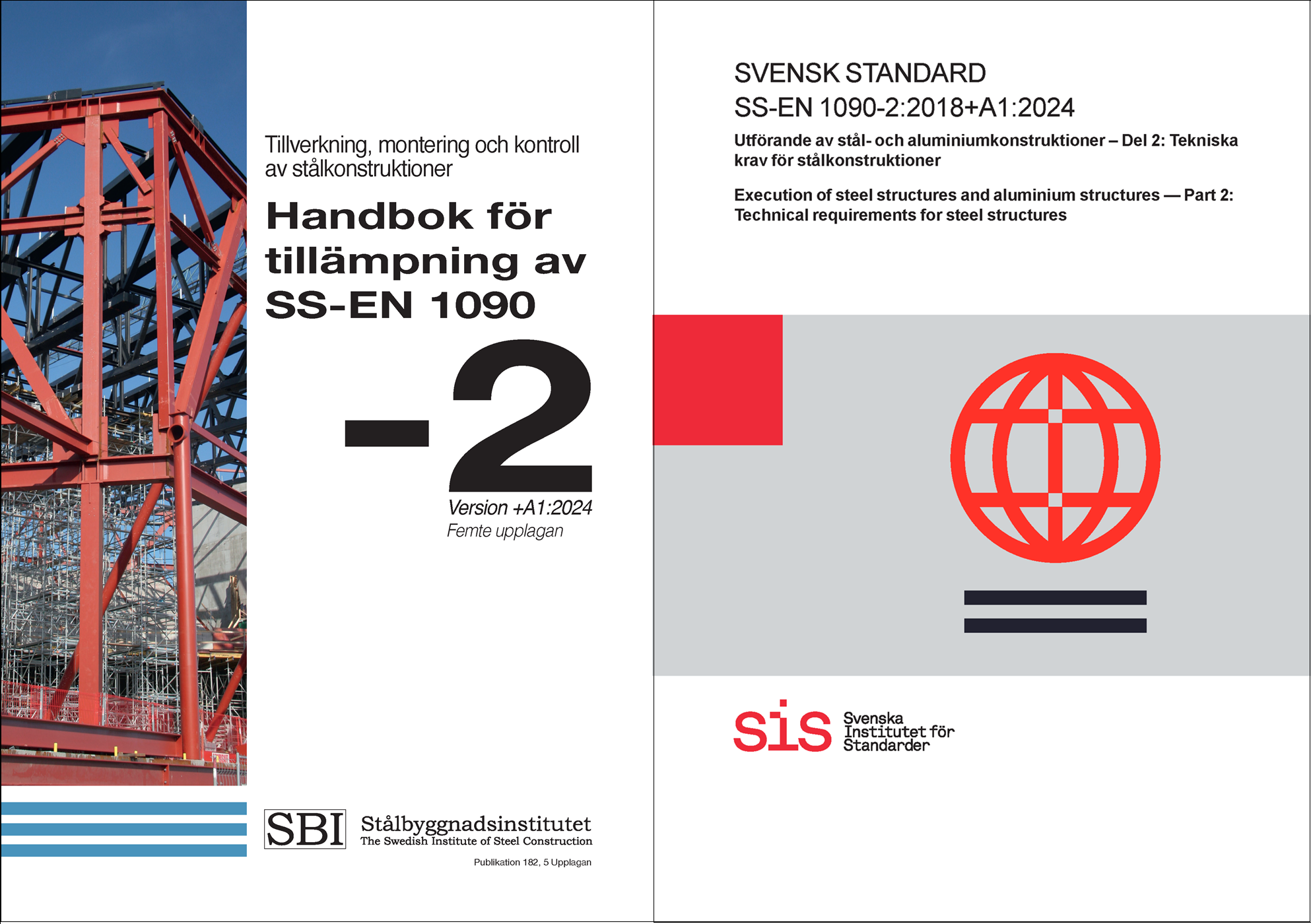 I paketet ingår handboken (P182, 5 upplagan) samt standarden SS-EN 1090-2:2018+A1:2024 i pappersformat från SIS.