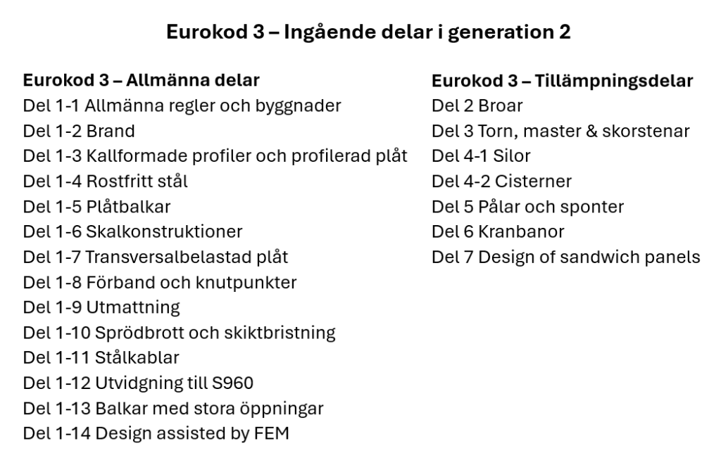 Nästa generation av eurokoderna beräknas att träda i kraft i mars 2028. Det finns en hel del nyheter bland standarderna som ingår i eurokoderna. Paketet med eurokoder är, precis som tidigare, omfattande och har till och med utökats. Antalet standarder som hanterar dimensionering av stålkonstruktioner, Eurokod 3, har utökats och innefattar nu 21 delar.